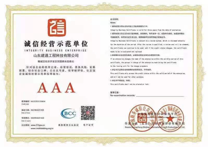 誠信經(jīng)營示范單位