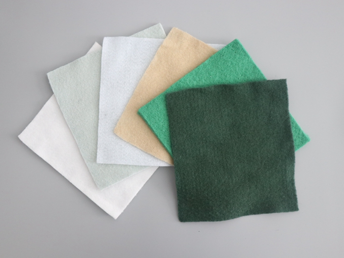 短纖針刺土工布是以滌綸短纖維為主要原料,經(jīng)開松、梳理、雜亂、鋪網(wǎng)針刺以及噴灑拒水劑等工藝生產(chǎn)而成。